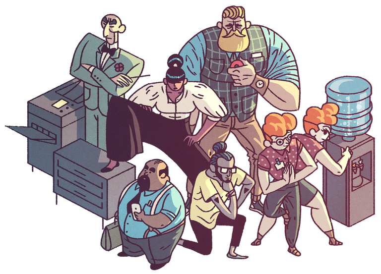 illustration of a group of scientists celebrating winning an award