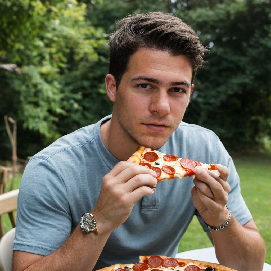 A college-logo sweatshirt might have the institution’s name misspelled—or be written in an unconventional font. A diner could be sitting at a table with their hand inside of a hamburger. A tennis racquet’s strings hang slack. A normally floppy slice of pizza sticks straight out.