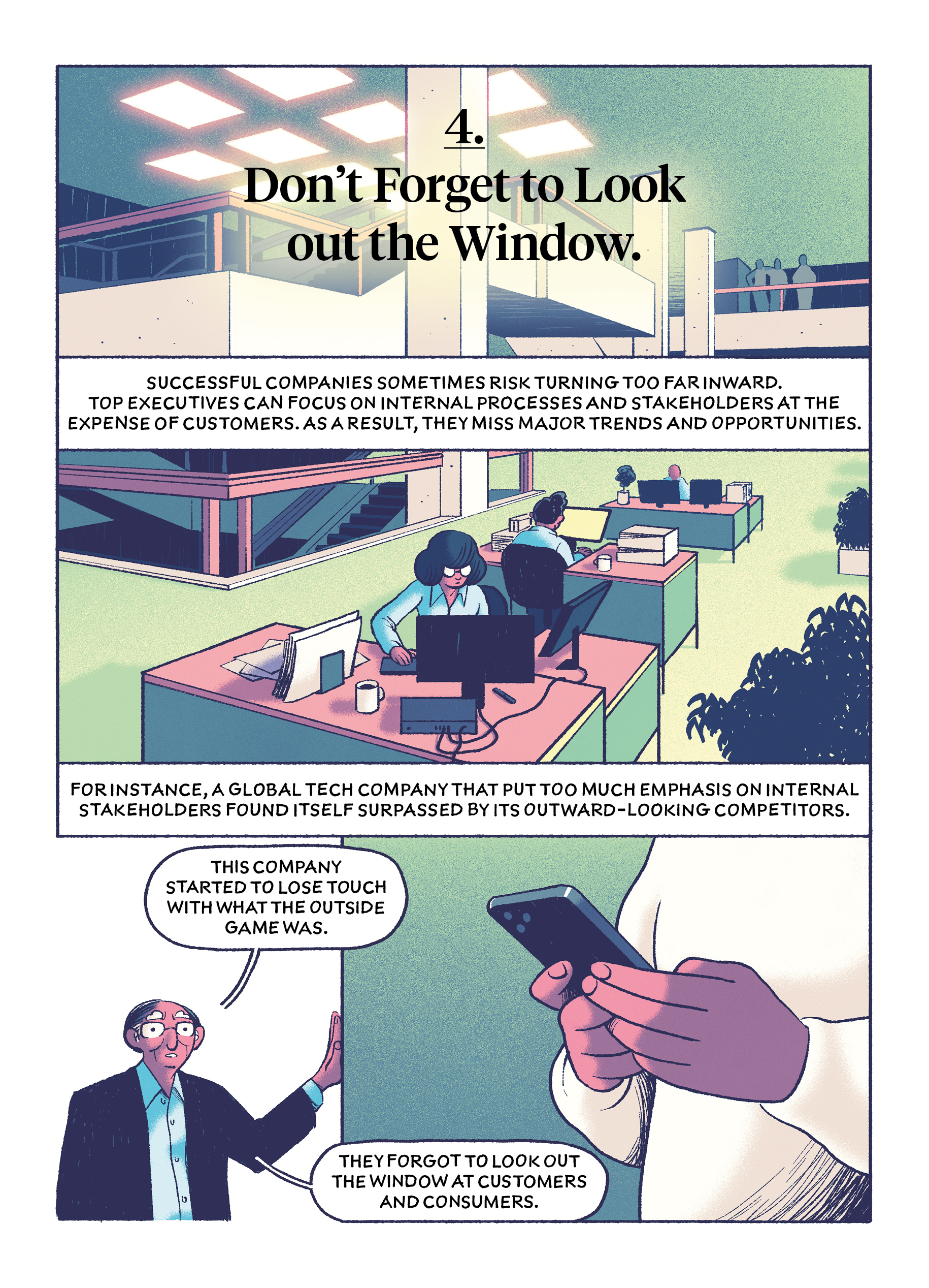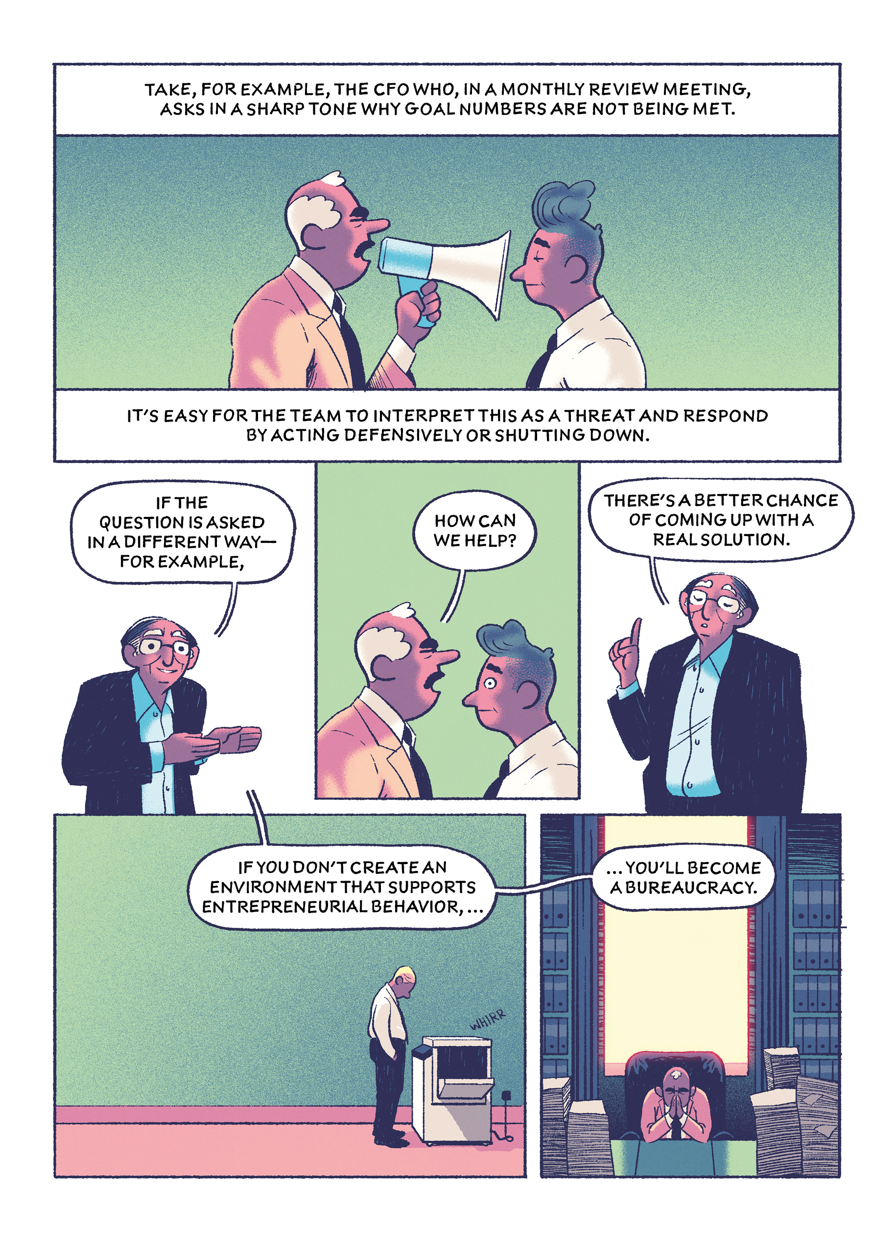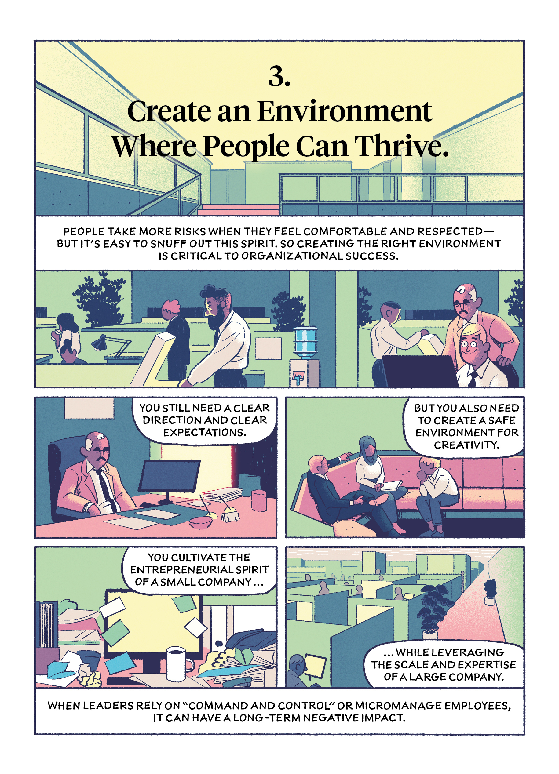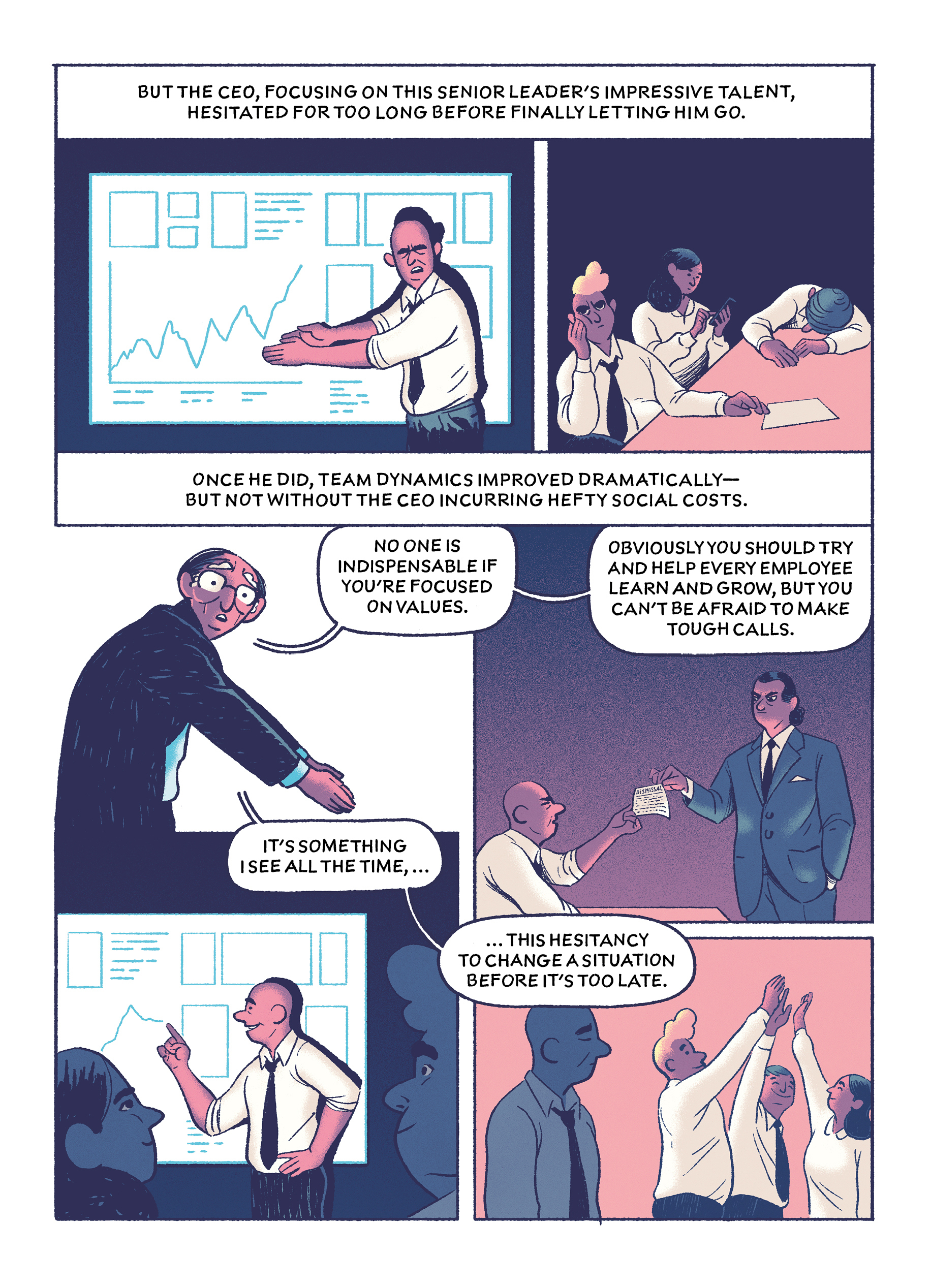 In this comic drawn by Michael Meier, Khosla lays out lessons that you can take away from five common leadership failures.