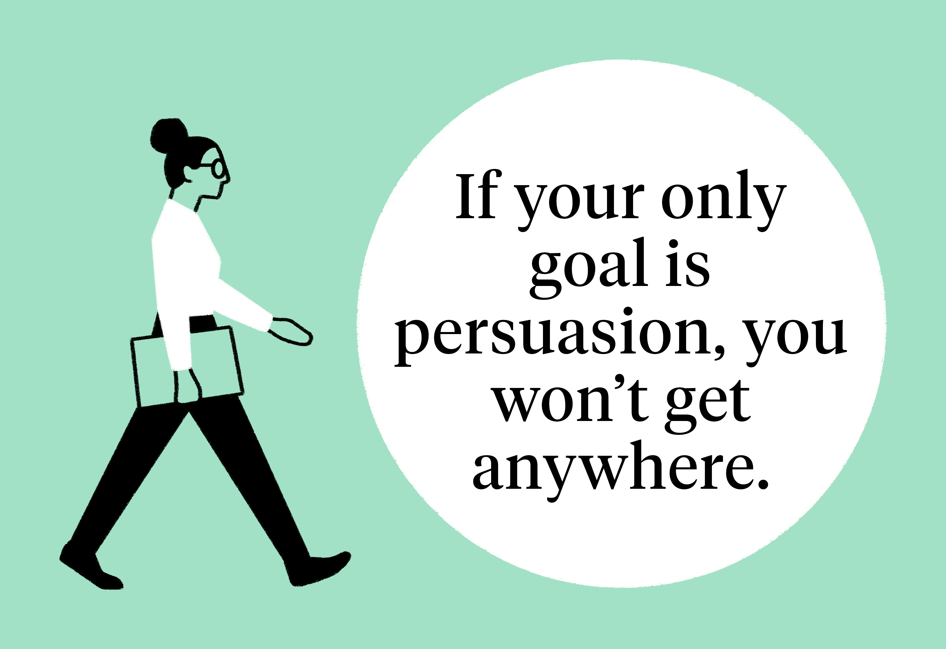 TEENY: If you try to jump right into the persuasion part, you’re skipping the most important step of just kind of getting them open to the idea that there are reasonable and valid perspectives on the other side. Then once you get through that and through multiple conversations, then maybe there can ultimately be some influence about where they stand and what they do. But if you don’t have them kind of bought in to at least being open to hearing another perspective, you’re not going to get anywhere.