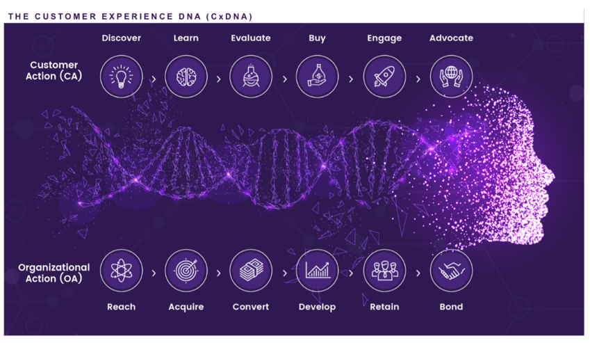 “This becomes an organizing framework,” he says. “Because once you know what stages customers are going through, you know what to do in order to facilitate their experience. The CxDNA also sets up the use cases for applying artificial intelligence to personalize the information and content to engage with customers at each step in the journey.”