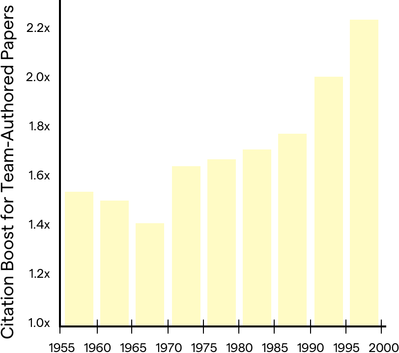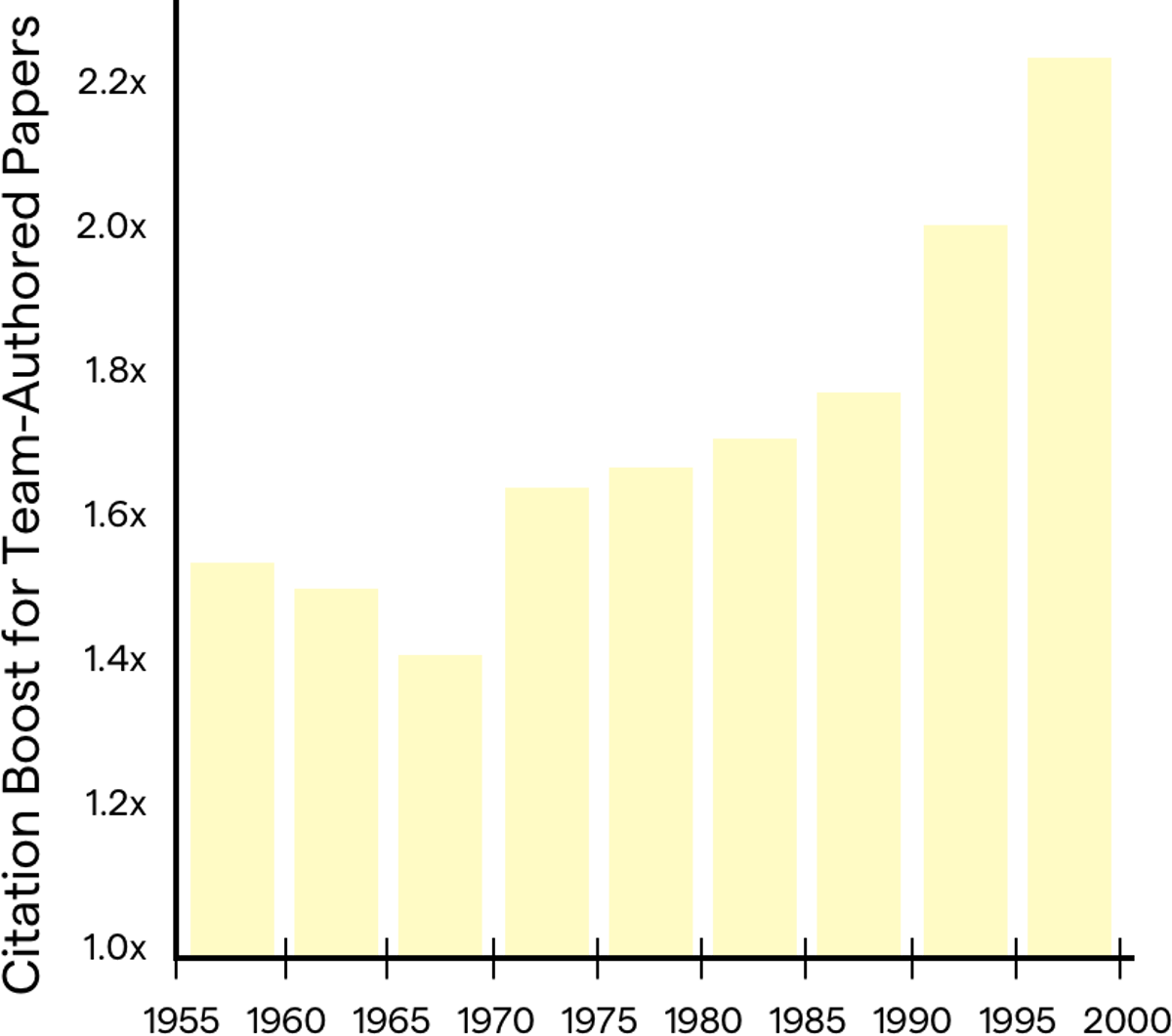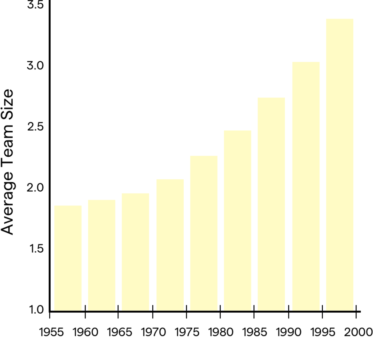 Wuchty, Stefan, Benjamin F. Jones, and Brian Uzzi. 2007. “The Increasing Dominance of Teams in the Production of Knowledge.” Science. 316(5827): 1036–1039.