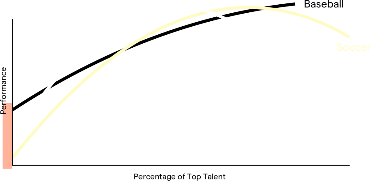 Teams are more than the sum of their parts. In fact, sometimes having lots of top talent on a team actually hurts performance. We’ll get back to that in a minute.