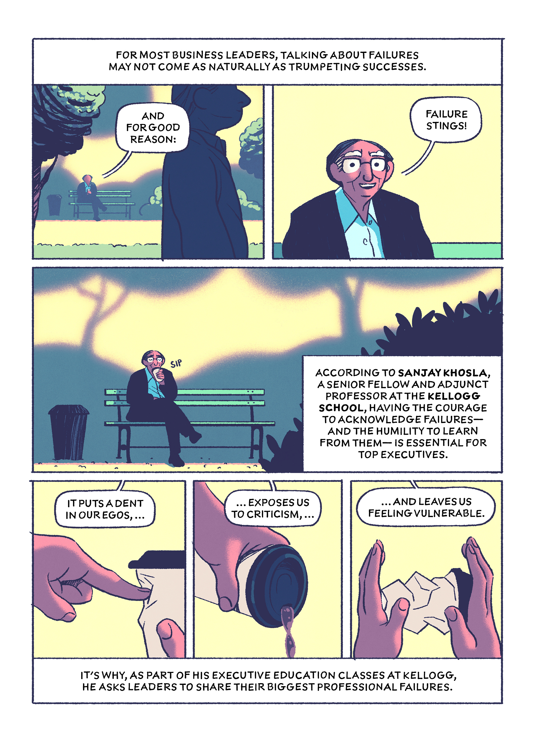 Never fear. Kellogg Insight’s very first comic book is here. No, there are no professors in capes or far-out tales. This is more of a ... grounded adventure story. In this illustrated comic, Khosla offers five lessons leaders can take from common leadership failures. Scroll on, dear readers, for ...